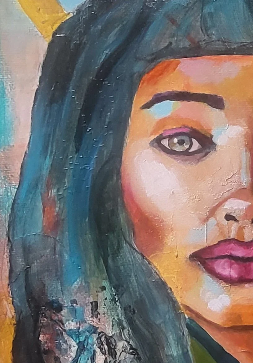 The paintings rendered by Sonya-Prajna emit unspoken emotions and thoughts that lure the viewer in by means of her ability to paint magick. Using intuition, while recognizing that all our Ancestors hold the key to our natural abilities, she weaves ancestral knowledge into the Unknown and the Unseen into stylized portraits and paintings. Her art, which is embedded with covered messages, symbols, collage and brushstrokes, are created from the heart and express how she seeks insight into understanding others and as a way for her work to captivate and transform.